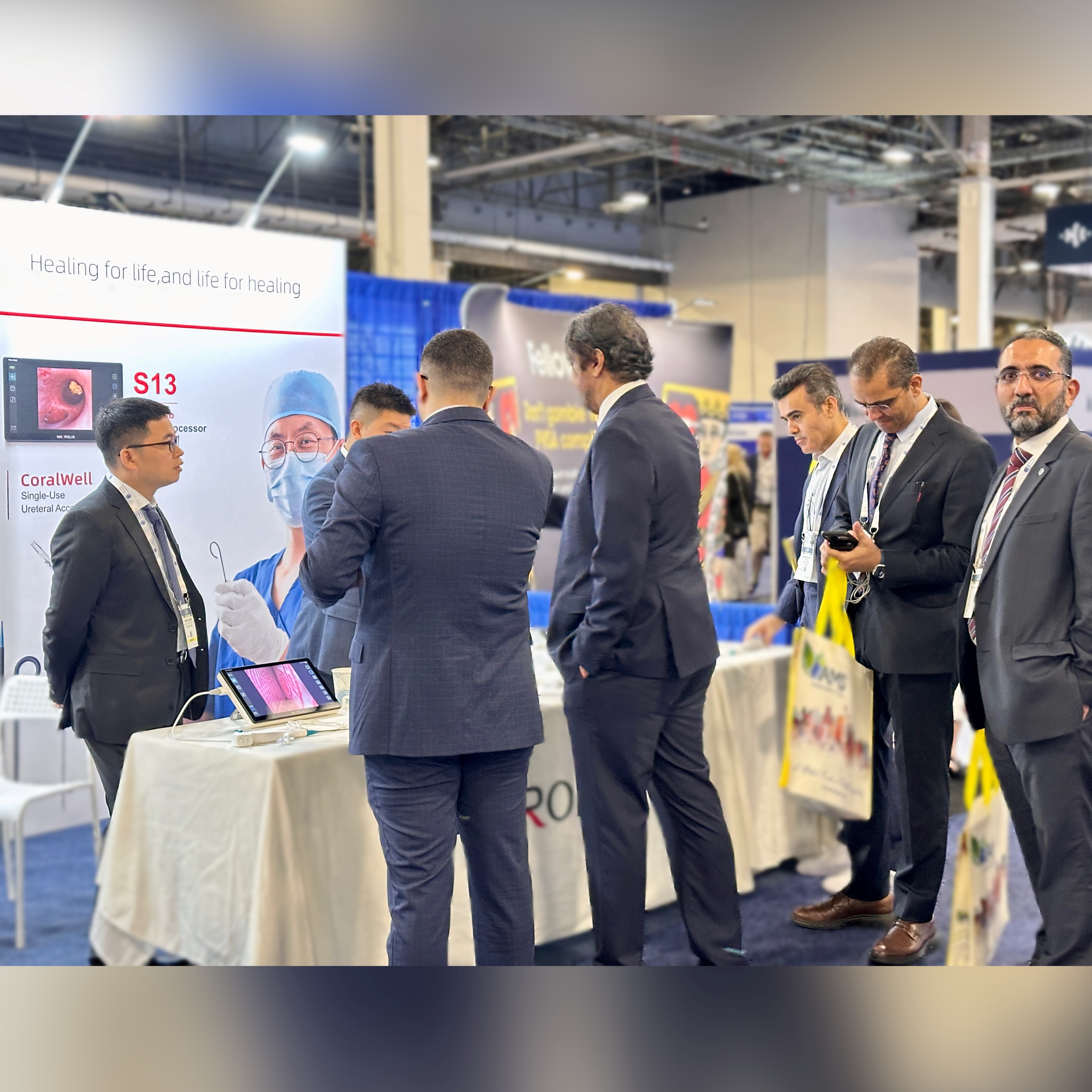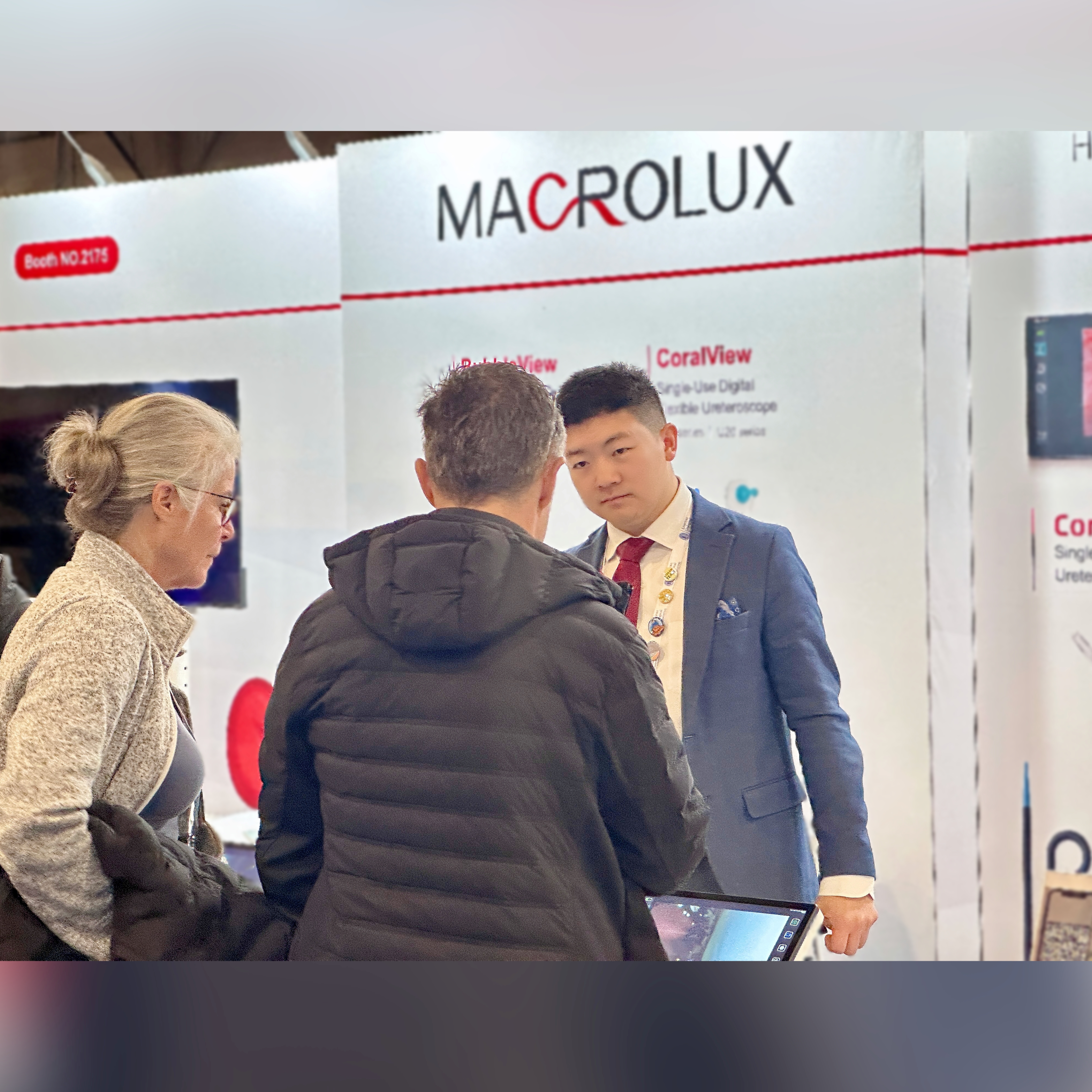 During the exhibition, MacroLux Medical showcased its latest urological solutions, including CoralView® Single-Use Digital Flexible Ureteroscope, CoralWell® Single-Use Ureteral Access Sheath, BubbleView® Single-Use Digital Flexible Cystoscope, and ViewHub® S13 Video Processor. The excellent performance and comprehensive product portfolio attracted numerous industry experts to experience and engage in in-depth discussions.
