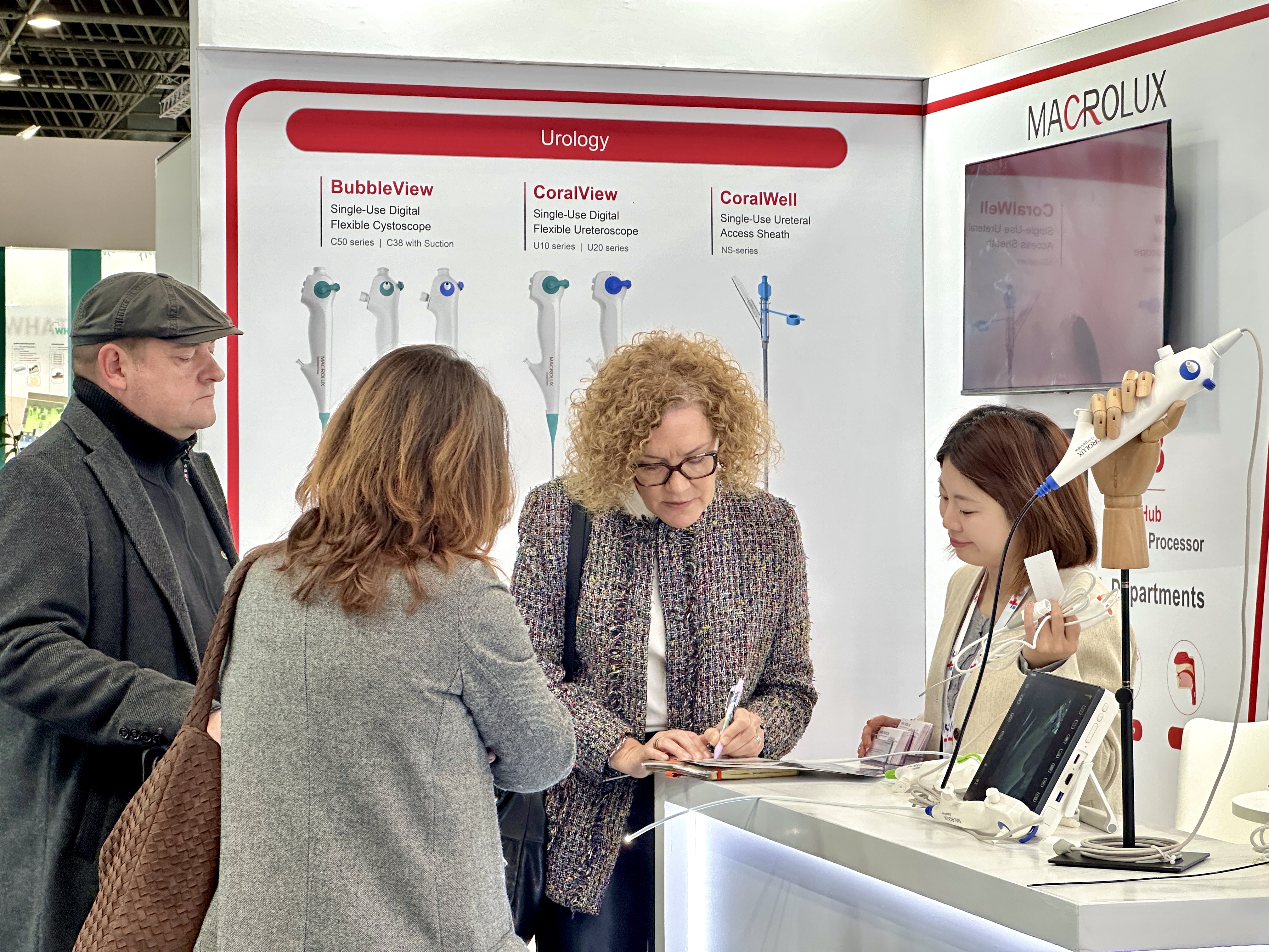 MacroLux Medical made a remarkable appearance at MEDICA, showcasing a portfolio of innovative single-use electronic endoscopy solutions. The featured products included the GorgeView® single-use nasopharyngoscope, CoralView® single-use ureteropyeloscope, BubbleView® single-use cystoscope, LoopView® single-use bronchoscope, SeleneView® single-use hysteroscope, and the supporting ViewHub® S13 portable image processor. Their sophisticated design and superior electronic imaging performance attracted significant attention and facilitated in-depth exchanges with industry experts.