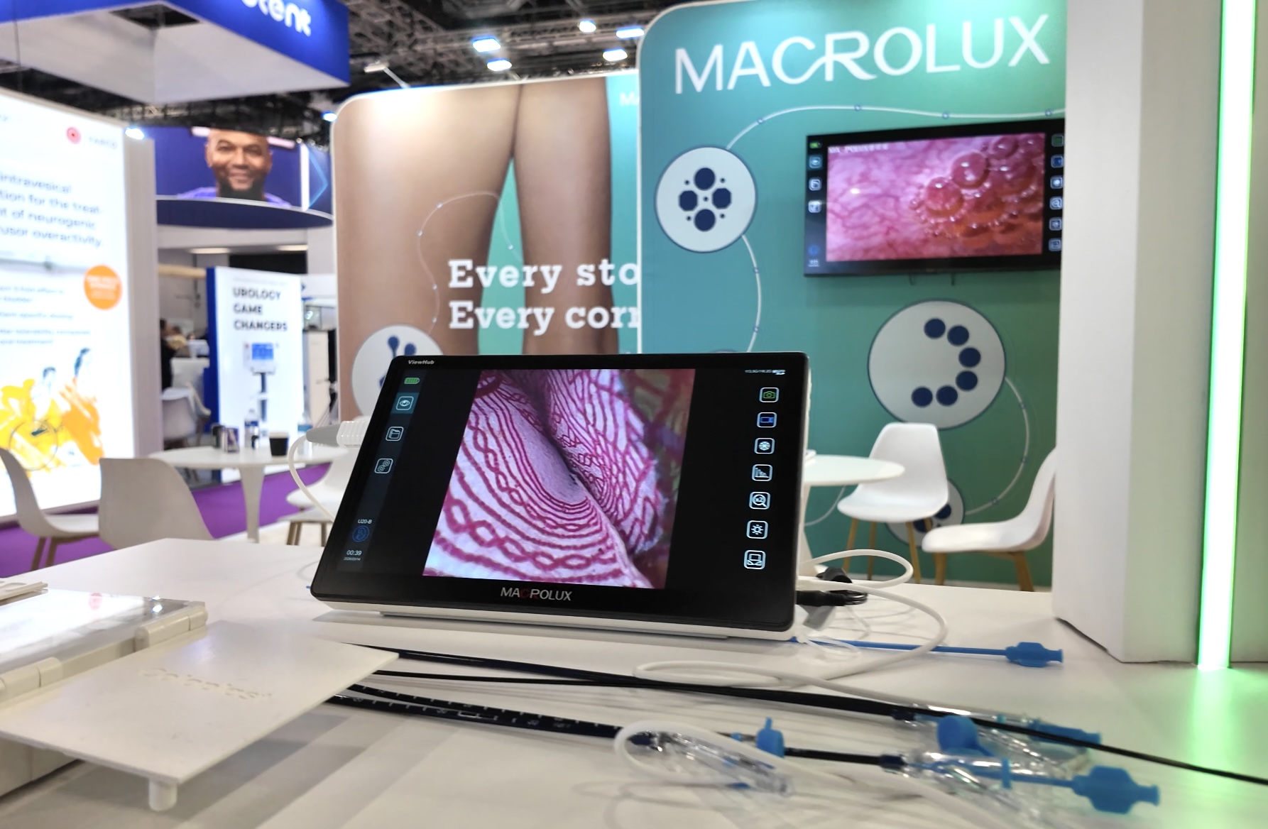 Throughout the event, the MacroLux booth attracted a steady stream of urologists, researchers, and industry partners from around the globe. The combination of the CoralView® flexible ureteroscope and FANS suction access sheath emerged as a standout solution. Featuring advanced Powerbend deflection technology and efficient stone clearance capability, this integrated approach became one of the highlights of the exhibition.