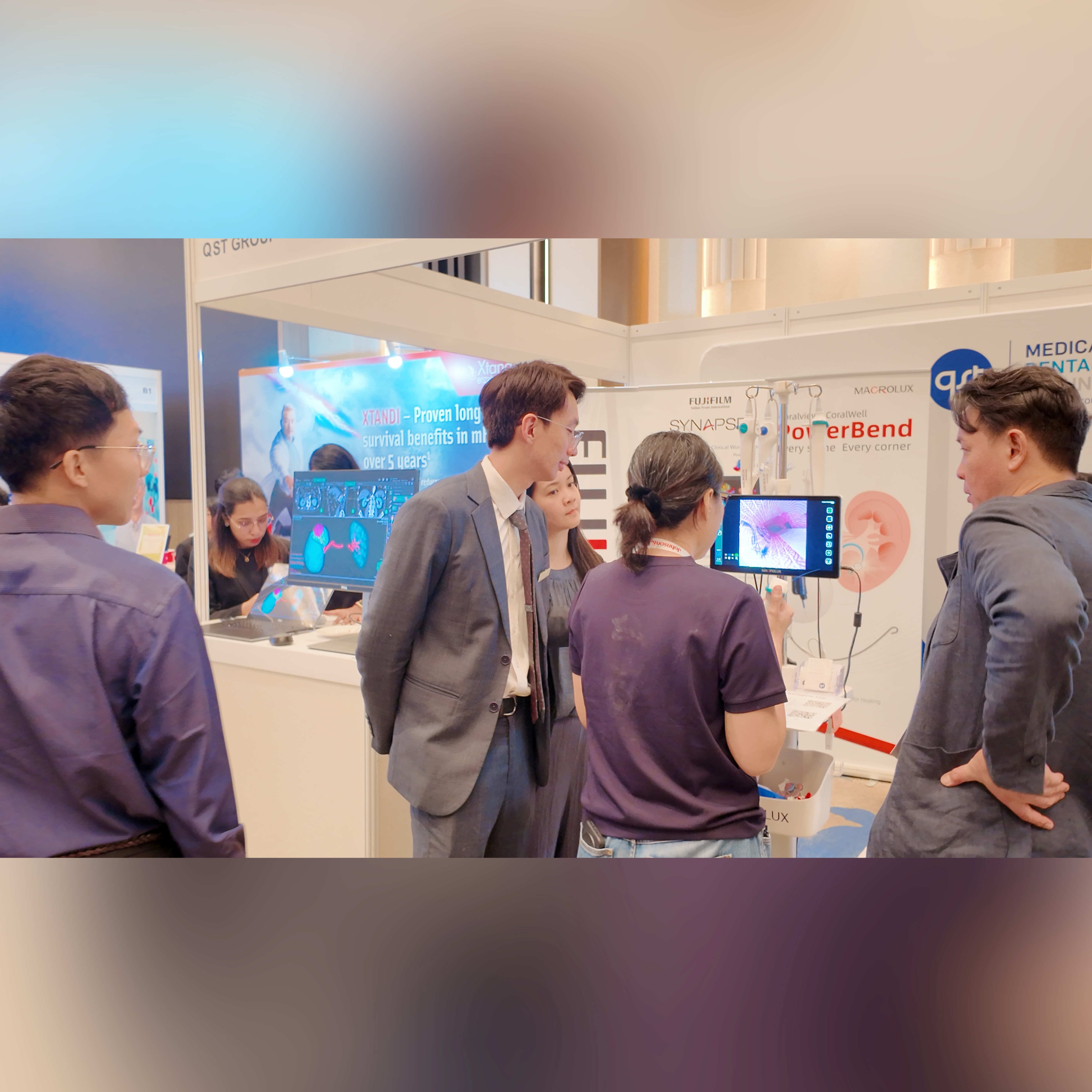 On July 3rd, MacroLux Medical, in collaboration with QST Group, participated in the endourology practical workshop organized by the European Association of Urology (EAU). MacroLux Medical's practical workstations for fURS, FANS, and mPCNL received high praise from urologists. Dr. Anil Shrestha and Dr. Mon Mon Oo led teaching sessions at the MacroLux workstation, where over thirty physicians had the opportunity to experience stone fragmentation using MacroLux products, commending the clear imaging and superior maneuverability. The PowerBend ureteroscope's ability to navigate deeply into the renal calyx impressed experts, who remarked, "This may become one of the trends for future fURS."